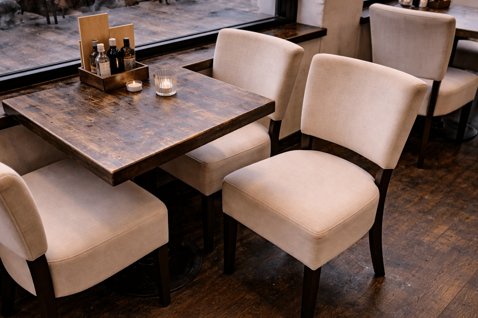 Restaurantstoelen worden dagelijks intensief gebruikt. Wij reinigen ze grondig en zorgen voor een frisse en representatieve uitstraling.